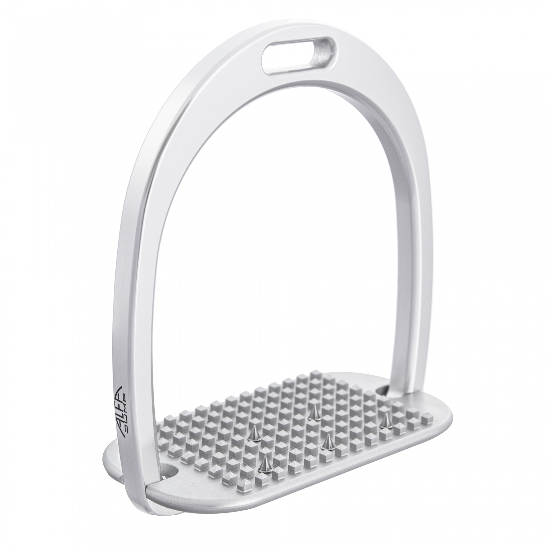 Forme large rectangulaire sans inclinaison, le plancher plat facilite l'équilibre du cavalier en suspension. Le crantage et l'adhérence sont accentués par 6 pointes inox supplémentaires. Poids = 300g